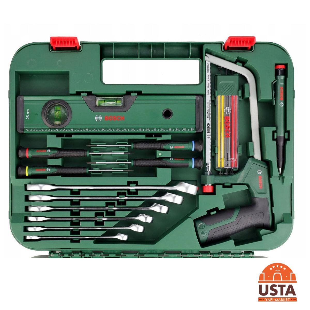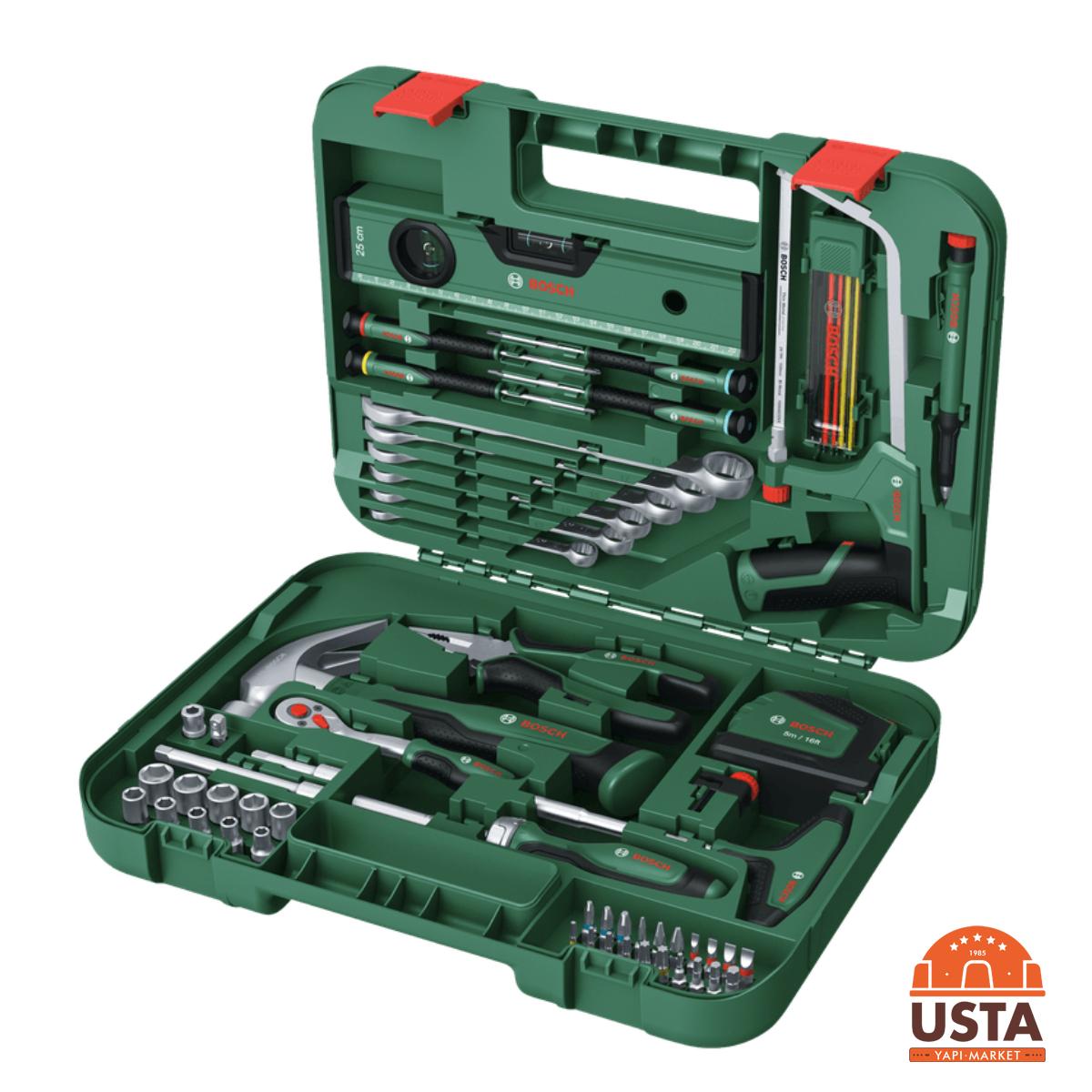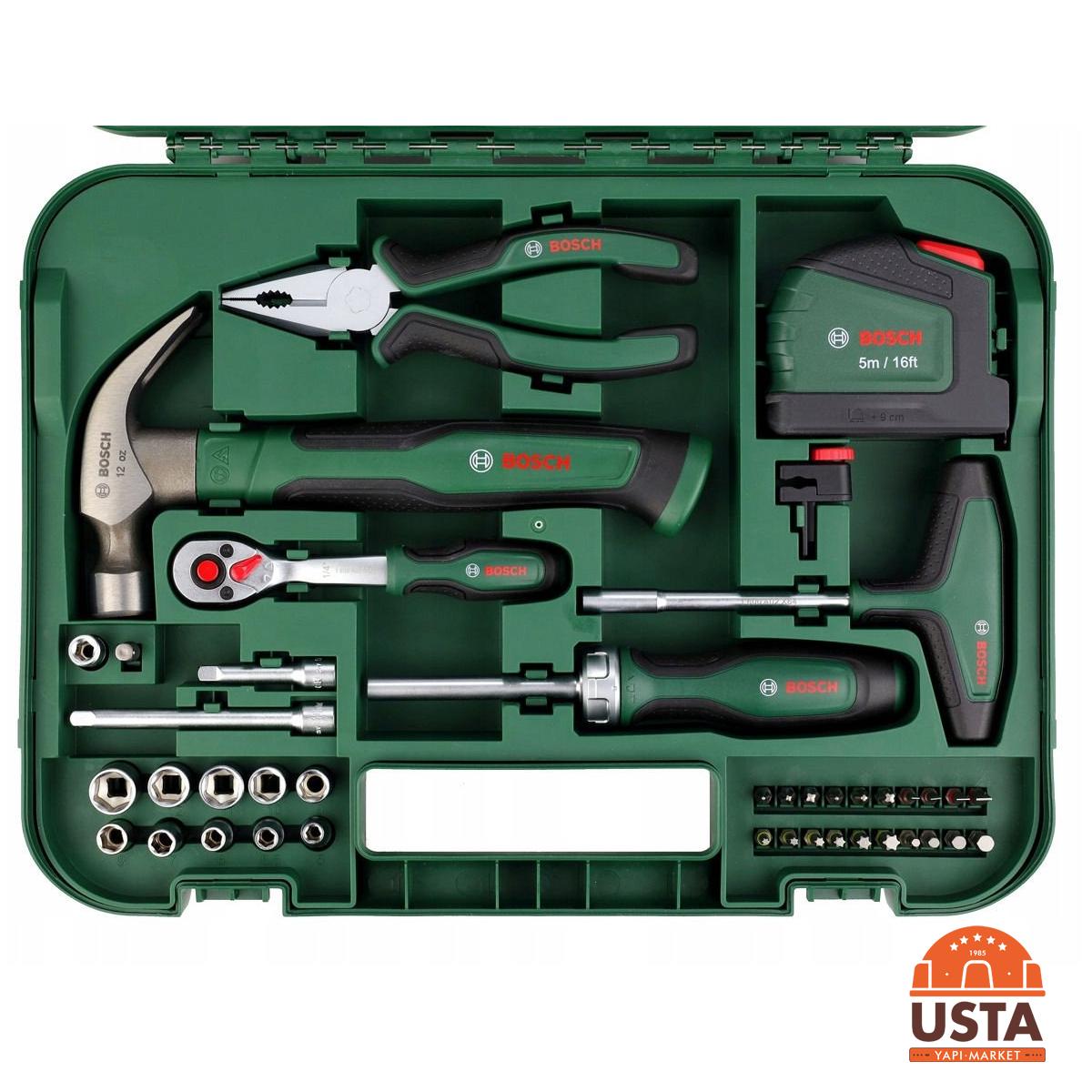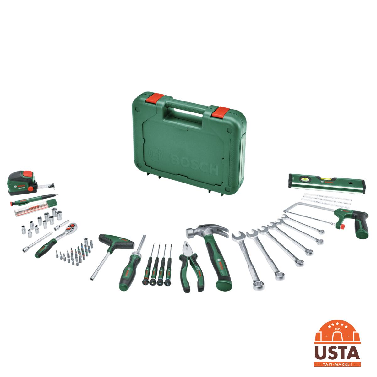 Bosch 64 Parça El Aleti Seti, ev içi tadilatlardan profesyonel bakım işlerine kadar her türlü ihtiyaca yanıt veren kapsamlı bir settir. Dayanıklı taşıma çantası içerisinde sunulan tüm parçalar, yüksek torka dirençli krom vanadyum çeliğinden üretilmiştir. Cırcırlı tornavida ve geniş uç yelpazesi sayesinde mobilya montajı ve makine onarımları hızlıca tamamlanabilir. İçerisinde bulunan temel el aletleri (pense, çekiç, metre), bir atölyede ihtiyaç duyulabilecek en kritik ekipmanları bir araya getirir. Kompakt tasarımı ile araç bagajında veya raflarda kolayca depolanabilir.