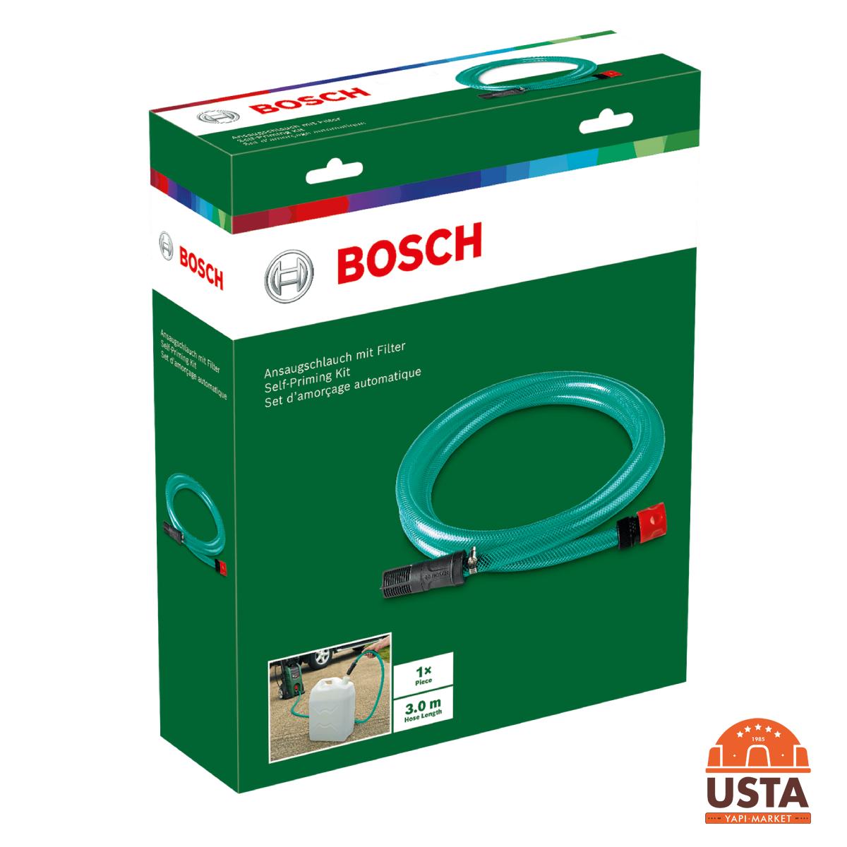 Bosch Kovadan Su Çekme Aparatı (Durgun Sudan Su Çekme Kiti) F016800421, Bosch yüksek basınçlı yıkama makineleriyle alternatif su kaynaklarından (kovadan, fıçıdan veya durgun sudan) su çekmek için tasarlanmış orijinal bir aksesuardır. 3 metre uzunluğundaki besleme hortumu, evrensel bağlantı sistemi, filtre ve geri dönüşsüz valf sayesinde makinelerin su girişine kolayca bağlanır ve 160 bar’a kadar dayanıklıdır. Bu sayede musluk suyu olmayan ortamlarda da temizlik yapmaya imkan tanır.