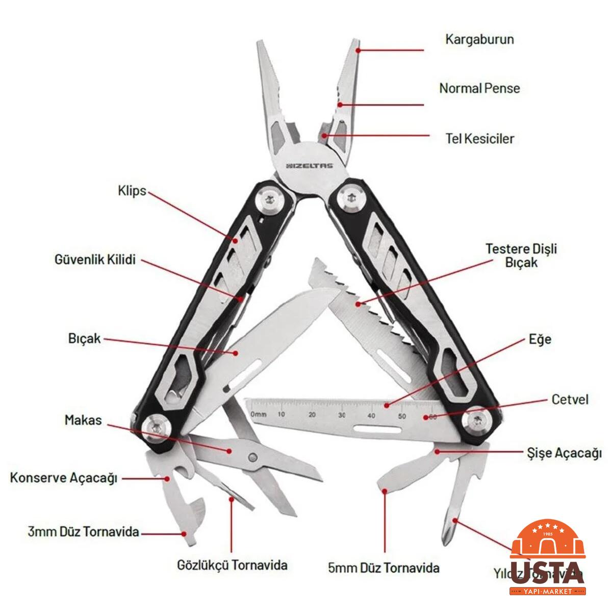 • 15 Fonksiyonlu İzeltaş Multitool Pro