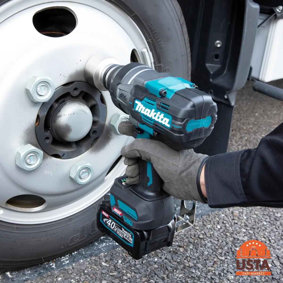 Makita Şarjlı Darbeli Somun Sıkma TW001GM201 XGT 40V, 40V XGT batarya sistemiyle çalışan bir darbeli somun sıkma makinesidir. Bu araç, büyük çaplı somun ve cıvata sıkma-gevşetme işlemleri için geliştirilmiştir. Brushless motoru, 1.800 Nm maksimum sıkma torku ve 2.050 Nm somun çözme torku ile ağır hizmet vidalama ve montaj uygulamalarını destekler; üç güç modu sayesinde hassas veya yüksek güç gerektiren işlerde ayarlanabilir kullanım sağlar. Kompakt tasarımı ve ergonomik sapı, inşaat, makine montajı ve araç tamiri gibi alanlarda uzun süreli çalışma için uygundur. Kit paketi, 2 adet 4.0 Ah batarya ve şarj cihazı içerir; bu sayede sürekli kullanım imkanı sunar.